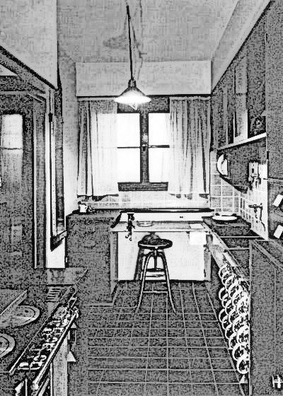 Die „Frankfurter Küche“ gilt als Ursprung der heutigen Einbauküche. Sie wurde 1926 von der Wiener Architektin Margarete Schütte-Lihotzky für ein soziales Wohnungsbauprogramm „Neues Frankfurt“ entworfen. Beauftragt vom damaligen Stadtbaurat Ernst May, entwickelte sie eine Küche die von den Arbeitsabläufen her ähnlich effektiv war wie ein industrieller Arbeitsplatz. Über 10.000 Mal wurde diese funktionale Küche schließlich eingebaut. Die Kosten für die Einbauküche wurden übrigens damals schon auf den Mietpreis aufgeschlagen.