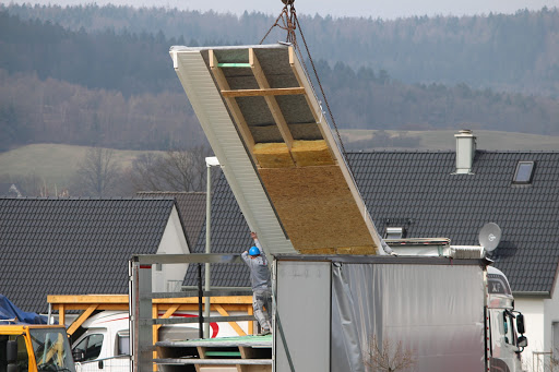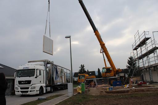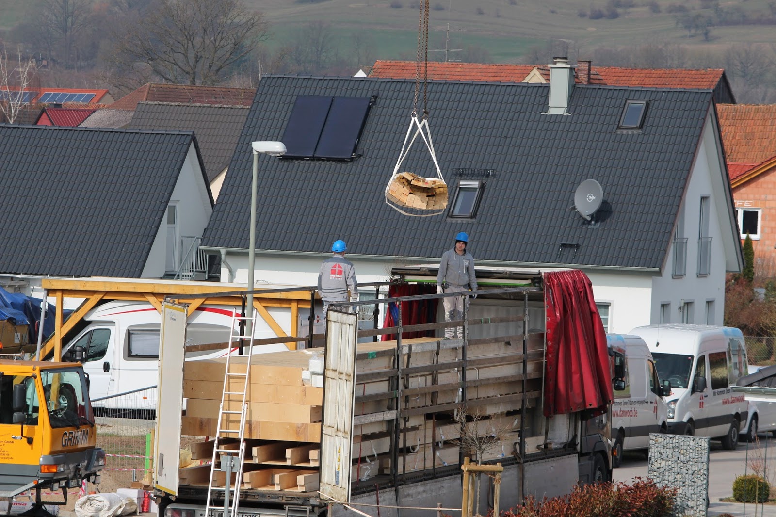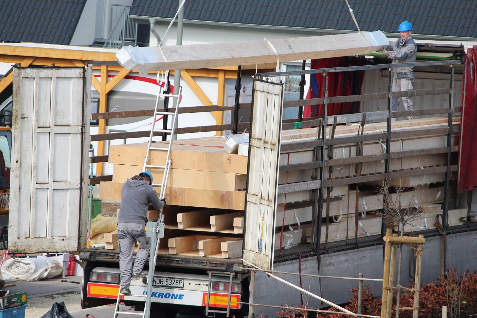 …einzelne, fertige Wände ordentlich verpackt auf ein bis zwei Lkw’s direkt aus Polen.