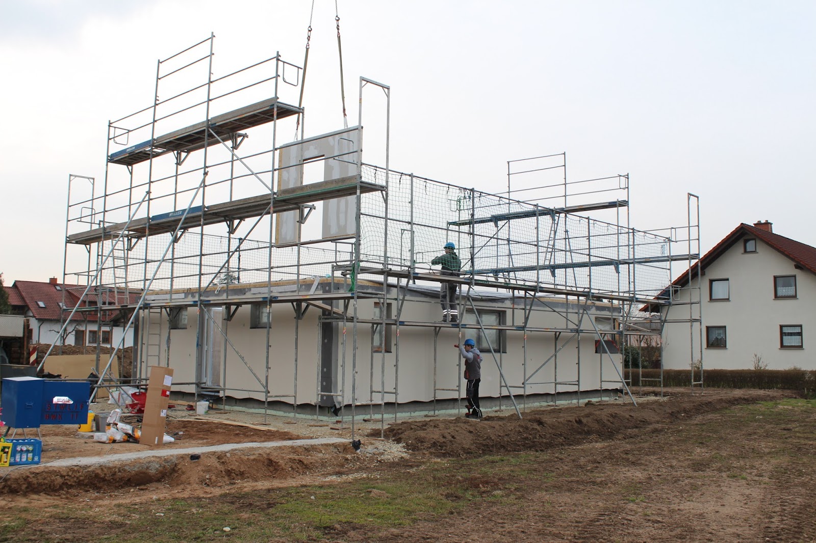 Etwa eine Woche vor Beginn werden wir uns mit der Firma und dem Architekten am Grunstück treffen. An diesem Tag wird alles besprochen, Schnurgerüst erstellt (abgesteckt) und eingemessen.