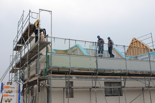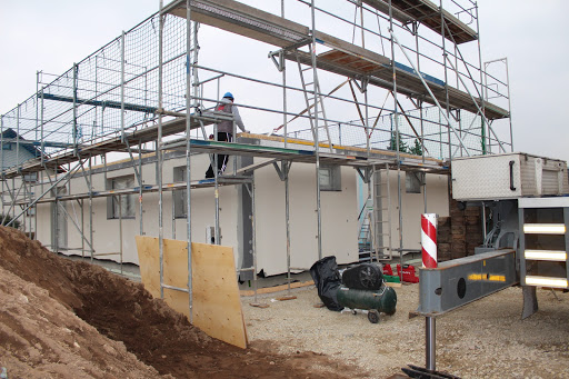 Dahinter steigt ein Bus voll Polen aus und macht ein Haus aus den Einzelteilen!