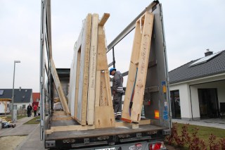 …einzelne, fertige Wände ordentlich verpackt auf ein bis zwei Lkw’s direkt aus Polen.