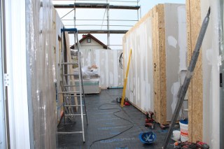 Steht das Haus, vergehen nur wenige Wochen, bis das Haus komplett bezugsfertig ist. Je nach Hausgröße kann es schon in vier Wochen fertig sein oder wie bei uns in etwa sieben Wochen.